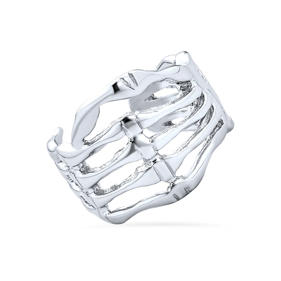 You don’t need an ear piercing for fashionable sterling silver jewelry. This 14mm ear cuffs has a modern style skeleton hand any punk rocker is sure to love.