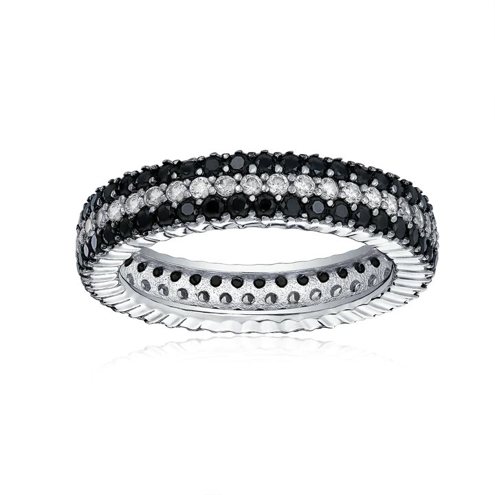 This glistening black and white cubic zirconia band is breath of fresh air amongst other non traditional statement wedding band rings.