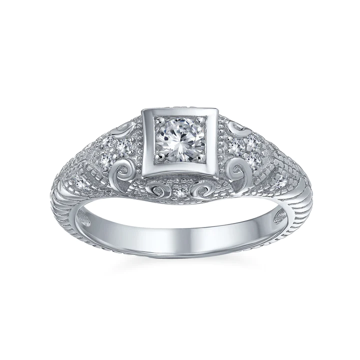 Enchant your beloved fiancé with this gorgeous, vintage style engagement ring. Express your passionate love for your darling bride to be with this magnificent, art deco style engagement ring.